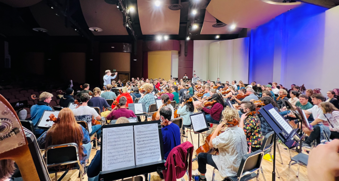Gemeinsame Probe mit Musiker der University of Puget Sound in der Schneebeck Concert Hall