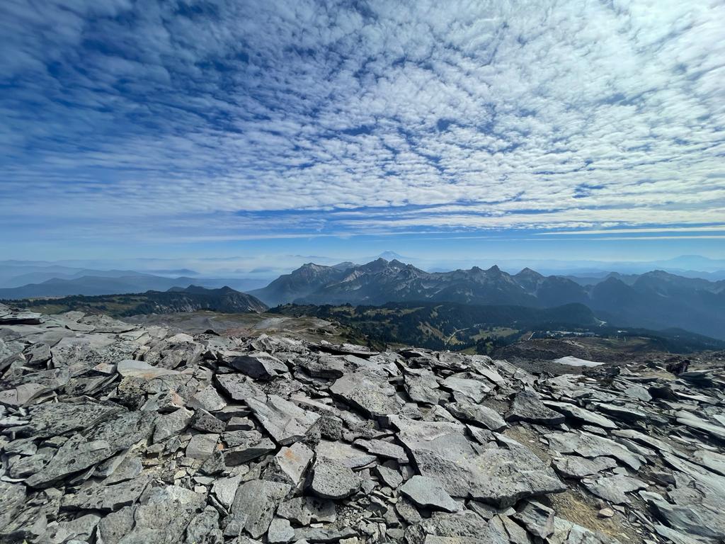 Nach einer ungewohnt langen und erholsamen Nacht starteten wir in der Theorie um 9.15 Uhr, in der Praxis um 9.40 Uhr Richtung Mount Rainier. Unser erster Stopp war ein Walmart. Statt einer vorbestimmten Auswahl an Essensmöglichkeiten durfte sich dieses Mal jeder mit Hilfe von etwas Bargeld sein eigenes Lunchpaket zusammenstellen. Die Größe des Ladens und die Auswahl war gigantisch, vor allem bei allerlei Süßwaren. Danach ging es auf die verbleibenden 1,5 Stunden Busfahrt. Bereits nach einer halben Stunde konnte man einen beeindruckenden Blick auf den Mount Rainier, das heutige Ziel, erhaschen.
